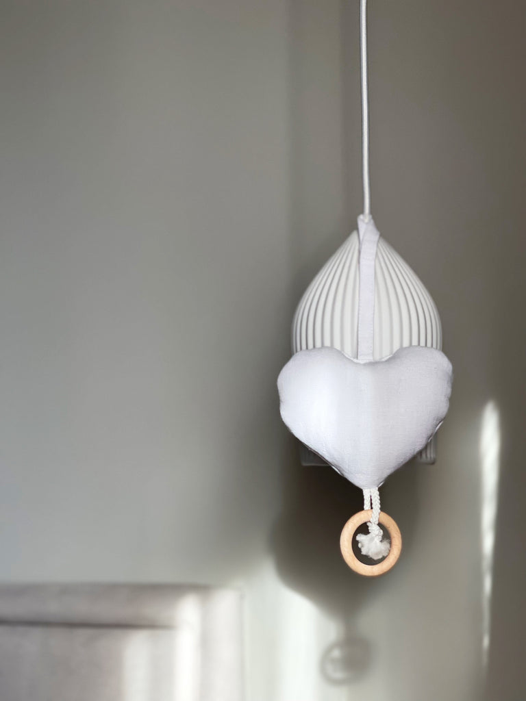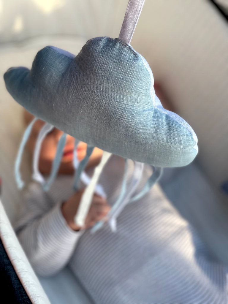 ▫️Rinkinuką sudaro: barškanti žvaigždutė, debesėlis su lietučiu, širdelė su kramtuku ir mėnuliukas.