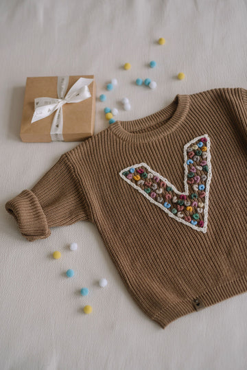 Kiekvieną vardą ant megztuko siuvinėjame rankomis todėl megztukas tampa unikaliu kūriniu kuris skirtas tik Jums ir Jūsų vaikams.