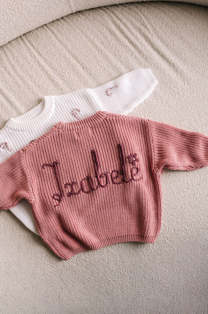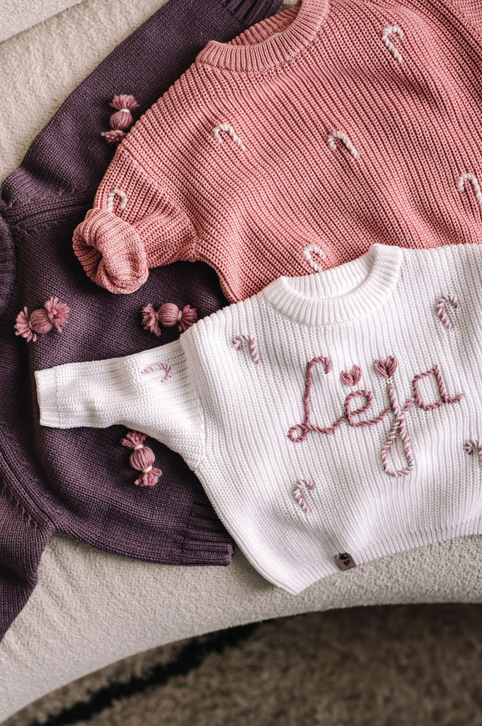 Kad megztukas taptų dar ypatingesnis, pridėkite siuvinėtą vardą – megztuko priekyje arba nugaroje.